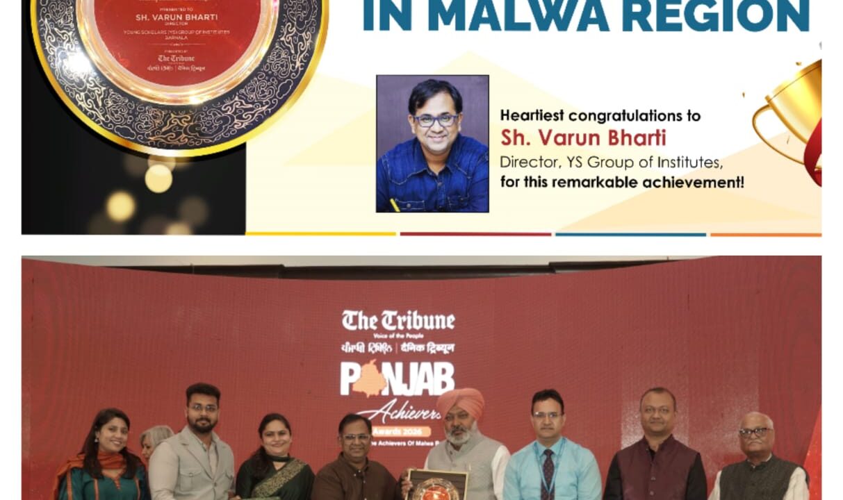 ਵਾਈਐਸ ਗਰੁੱਪ ਆਫ਼ ਇੰਸਟੀਚਿਊਟਸ ਨੂੰ ਬਠਿੰਡਾ ਵਿੱਚ “ਅਚੀਵਰਜ਼ ਐਵਾਰਡ” ਨਾਲ ਸਨਮਾਨਿਤ ਕੀਤਾ ਗਿਆ