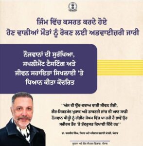 ਜਿੰਮ ਵਿੱਚ ਕਸਰਤ ਕਰਦੇ ਹੋਏ ਹੋਣ ਵਾਲੀਆਂ ਮੌਤਾਂ ਨੂੰ ਰੋਕਣ ਲਈ ਸਲਾਹਕਾਰੀ ਜਾਰੀ : ਡਾ. ਬਲਜੀਤ ਸਿੰਘ