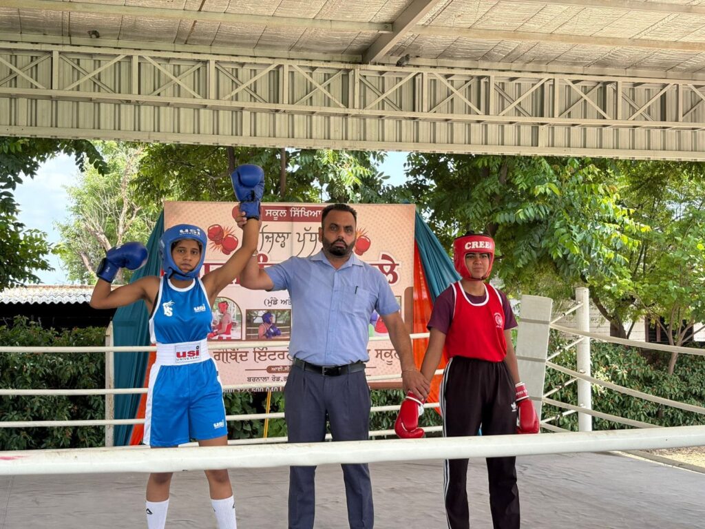 ਬਰਨਾਲਾ(ਹਿਮਾਂਸ਼ੂ ਗੋਇਲ):-ਸਕੂਲ ਸਿੱਖਿਆ ਵਿਭਾਗ ਵੱਲੋਂ ਕਰਵਾਏ ਗਏ ਜਿਲਾ ਪੱਧਰੀ ਬੌਕਸਿੰਗ ਖੇਡ ਮੁਕਾਬਲਿਆਂ ਵਿੱਚ ਪੰਜਾਬ ਪਬਲਿਕ ਸਕੂਲ ਮਾਨਾ ਪਿੰਡੀ ਬਰਨਾਲਾ ਦੀ ਬੌਕਸਿੰਗ ਅੰਡਰ -19 ਦੀ ਲੜਕੀ ਨਵਨੀਤ ਕੌਰ ਨੇ ਗੋਬਿੰਦ ਇੰਟਰਨੈਸਨਲ ਸਕੂਲ ਭਦੌੜ ਵਿਖੇ ਹੋਏ ਜਿਲਾ ਪੱਧਰੀ ਬੌਕਸਿੰਗ ਖੇਡ ਮੁਕਾਬਲਿਆਂ ਵਿੱਚ ਸਾਨਦਾਰ ਪ੍ਰਦਰਸ਼ਨ ਕਰਦੇ ਹੋਏ ਜਿਲੇ ਵਿੱਚੋਂ ਪਹਿਲਾ ਸਥਾਨ ਪ੍ਰਾਪਤ ਕੀਤਾ।ਹੁਣ ਇਹ ਬੱਚੀ ਸਟੇਟ ਪੱਧਰ ਮੁਕਾਬਲੇ ਲਈ ਚੁਣੀ ਗਈ ਹੈ।ਇਸ ਮੌਕੇ ਸੰਸਥਾ ਦੇ ਚੇਅਰਮੈਨ ਸ੍ਰ ਅਮਰਜੀਤ ਸਿੰਘ ਚੀਮਾਂ ,ਮੈਨੇਜਰ ਸੁਖਦੀਪ ਸਿੰਘ ਚੀਮਾਂ ਨੇ ਬੱਚੀ ਦੀ ਇਸ ਪ੍ਰਾਪਤੀ ਤੇ ਸਾਰੇ ਸਕੂਲ ਦੇ ਸਟਾਫ ਅਤੇ ਮਾਪਿਆਂ ਨੂੰ ਵਧਾਈ ਦਿੱਤੀ ਅਤੇ ਬੱਚੀ ਨੂੰ ਅੱਗੋਂ ਹੋਰ ਵੀ ਮਿਹਨਤ ਕਰਨ ਲਈ ਪ੍ਰੇਰਿਆ।ਸਕੂਲ ਦੇ ਪਿੰਸੀਪਲ ਮੈਡਮ ਸਿਮਰਨ ਕੋਰ ਨੇ ਬੱਚੀ ਅਤੇ ਸਮੂਹ ਸਟਾਫ ਨੂੰ ਵਧਾਈ ਦਿੱਤੀ ਅਤੇ ਕਿਹਾ ਕਿ ਵਿਦਿਆਰਥਣ ਦੀ ਇਹ ਜਿੱਤ ਸਕੂਲ ਦੇ ਫਿਜੀਕਲ ਅਧਿਆਪਕ ਗੁਰਵੀਰ ਸਿੰਘ ਅਤੇ ਕਰਨਦੀਪ ਦੇ ਉਪਰਾਲੇ ਅਤੇ ਵਿਦਿਆਰਥਣ ਦੀ ਅਣਥੱਕ ਮਿਹਨਤ ਸਦਕਾ ਹੀ ਸੰਭਵ ਹੋਈ ਹੈ।