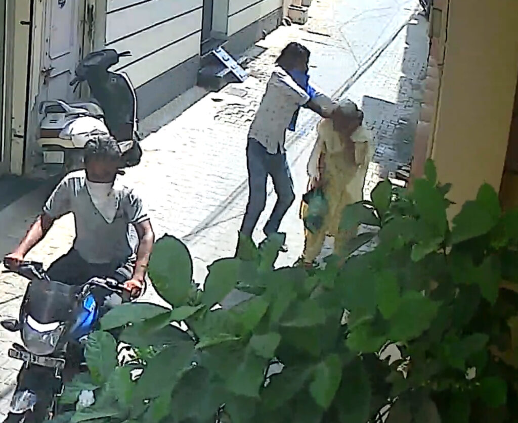 ਬਰਨਾਲ਼ਾ: ਸਥਾਨਕ ਸ਼ਹਿਰ ਅੰਦਰ ਉਸ ਸਮੇਂ ਲੋਕਾਂ ਅੰਦਰ ਸਹਿਮ ਦਾ ਮਾਹੌਲ ਦੇਖਣ ਨੂੰ ਮਿਲੀਆਂ ਜਦੋਂ ਸ਼ਹਿਰ ਦੇ ਘਣੀ ਅਬਾਦੀ ਵਾਲੇ ਇਲਾਕੇ ਕਿਲਾ ਮੁਹੱਲਾ ਵਿੱਚ ਸ਼ੁੱਕਰਵਾਰ ਸਵੇਰੇ ਬੇਖੌਫ ਲੁਟੇਰੇਆਂ ਨੇ ਦਿਨ ਦਿਹਾੜੇ ਇਕ ਬਜ਼ੁਰਗ ਔਰਤ ਦੀ ਸੋਨੇ ਦੀ ਬਾਲੀ ਖੋਹ ਕਿ ਲੁਟੇਰੇ ਮੋਟਰਸਾਈਕਲ ‘ਤੇ ਸਵਾਰ ਹੋ ਕੇ ਫਰਾਰ ਹੋ ਗਏ। ਇਹ ਘਟਨਾ ਕਰੀਬ ਸਵੇਰੇ 10 ਵਜੇ ਵਾਪਰੀ, ਜਦੋਂ ਬਜ਼ੁਰਗ ਮਹਿਲਾ ਆਪਣੇ ਘਰ ਵੱਲ ਪੈਦਲ ਜਾ ਰਹੀ ਸੀ। ਵਾਇਰਲ ਹੋ ਰਹੀ ਸੀ.ਸੀ.ਟੀ.ਵੀ. ਫੁਟੇਜ ਅਨੁਸਾਰ ਬਜ਼ੁਰਗ ਮਹਿਲਾ ਕਿਲਾ ਮੁਹੱਲਾ ਦੀ ਇਕ ਗਲੀ ਰਾਹੀਂ ਆਪਣੇ ਘਰ ਵਾਪਸ ਆ ਰਹੀ ਸੀ, ਜਦੋਂ ਅਚਾਨਕ ਪਿੱਛੋਂ ਇਕ ਮੋਟਰਸਾਈਕਲ ‘ਤੇ ਸਵਾਰ ਦੋ ਨਕਾਬਪੋਸ਼ ਨੌਜਵਾਨ ਆਏ। ਉਨ੍ਹਾਂ ਬਜ਼ੁਰਗ ਮਹਿਲਾ ਕੋਲ ਆ ਕੇ ਆਪਣੀ ਮੋਟਰਸਾਈਕਲ ਦੀ ਗਤੀ ਘੱਟ ਕੀਤੀ ਅਤੇ ਉਨ੍ਹਾਂ ਵਿੱਚੋਂ ਇਕ ਨੌਜਵਾਨ ਹੇਠਾਂ ਉਤਰ ਗਿਆ ਜਦਕਿ ਦੂਜਾ ਮੋਟਰਸਾਈਕਲ ‘ਤੇ ਹੀ ਬੈਠਿਆ ਰਿਹਾ। ਪਲਕ ਝਪਕਦੇ ਹੀ ਹੇਠਾਂ ਉਤਰੇ ਨੌਜਵਾਨ ਨੇ ਮਹਿਲਾ ਦੇ ਕੰਨ ਤੋਂ ਸੋਨੇ ਦੀ ਬਾਲੀ ਖਿੱਚ ਲਈ ਅਤੇ ਦੋਵੇਂ ਜਲਦੀ ਨਾਲ ਮੌਕੇ ਤੋਂ ਫਰਾਰ ਹੋ ਗਏ। ਦੱਸਿਆ ਜਾ ਰਿਹਾ ਹੈ ਕਿ ਦੋਵੇਂ ਨੌਜਵਾਨਾਂ ਨੇ ਆਪਣਾ ਚਿਹਰਾ ਢੱਕਿਆ ਹੋਣ ਕਾਰਨ ਉਹਨਾਂ ਦੀ ਪਹਿਚਾਣ ਕਰਨਾ ਔਖਾ ਹੋ ਗਿਆ ਹੈ। ਇਹ ਪੂਰੀ ਵਾਰਦਾਤ ਨੇੜਲੇ ਲੱਗੇ ਸੀ.ਸੀ.ਟੀ.ਵੀ. ਕੈਮਰਿਆਂ ‘ਚ ਕੈਦ ਹੋ ਗਈ ਹੈ। ਘਟਨਾ ਤੋਂ ਬਾਅਦ ਬਜ਼ੁਰਗ ਮਹਿਲਾ ਦੇ ਚੀਕਾਂ ਰੌਲ਼ਾ ਪਾਉਣ ‘ਤੇ ਆਲੇ ਦੁਆਲੇ ਲੋਕ ਇਕੱਠੇ ਹੋ ਗਏ, ਪਰ ਉਸ ਸਮੇਂ ਤੱਕ ਲੁਟੇਰੇ ਅੱਖਾਂ ਤੋਂ ਓਝਲ ਹੋ ਚੁੱਕੇ ਸਨ। ਸਥਾਨਕ ਨਿਵਾਸੀਆਂ ਨੇ ਤੁਰੰਤ ਸੀ.ਸੀ.ਟੀ.ਵੀ. ਫੁਟੇਜ ਕਢਵਾਈ ਅਤੇ ਉਸਨੂੰ ਸੋਸ਼ਲ ਮੀਡੀਆ ‘ਤੇ ਵਾਇਰਲ ਕਰ ਦਿੱਤਾ, ਤਾਂ ਜੋ ਲੁਟੇਰੇਆਂ ਦੀ ਪਛਾਣ ਹੋ ਸਕੇ ਅਤੇ ਉਨ੍ਹਾਂ ਨੂੰ ਜਲਦੀ ਫੜਿਆ ਜਾ ਸਕੇ। ਲੋਕਾਂ ਨੇ ਇਸ ਮਾਮਲੇ ਸੰਬੰਧੀ ਤੁਰੰਤ ਪੁਲਿਸ ਨੂੰ ਸੂਚਿਤ ਕੀਤਾ। ਇਸ ਘਟਨਾ ਤੋਂ ਬਾਅਦ ਸਥਾਨਕ ਲੋਕਾਂ ਵਿੱਚ ਭਾਰੀ ਰੋਸ ਦੇਖਣ ਨੂੰ ਮਿਲਿਆ। ਦਿਨ ਦਿਹਾੜੇ ਐਸੇ ਹਾਦਸੇ ਲੋਕਾਂ ਵਿੱਚ ਅਸੁਰੱਖਿਆ ਦੀ ਭਾਵਨਾ ਪੈਦਾ ਕਰ ਰਹੇ ਹਨ।