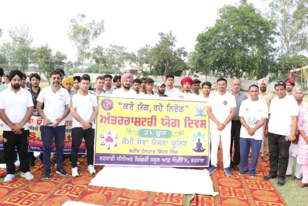 ਜ਼ਿਲ੍ਹਾ ਪ੍ਰਸ਼ਾਸਨ ਬਰਨਾਲਾ ਅਤੇ ਜ਼ਿਲ੍ਹਾ ਆਯੁਰਵੈਦਿਕ ਤੇ ਯੂਨਾਨੀ ਵਿਭਾਗ ਵਲੋਂ ਸੀ ਐੱਮ ਦੀ ਯੋਗਸ਼ਾਲਾ ਤਹਿਤ 11ਵਾਂ ਅੰਤਰਰਾਸ਼ਟਰੀ ਯੋਗ ਦਿਵਸ ਇੱਥੇ ਬਾਬਾ ਗਾਂਧਾ ਸਿੰਘ ਪਬਲਿਕ ਸਕੂਲ ਵਿੱਚ ਮਨਾਇਆ ਗਿਆ ਜਿਸ ਵਿੱਚ ਡਿਪਟੀ ਕਮਿਸ਼ਨਰ ਸ੍ਰੀ ਟੀ ਬੈਨਿਥ, ਐੱਸ ਐੱਸ ਪੀ ਮੁਹੰਮਦ ਸਰਫ਼ਰਾਜ਼ ਆਲਮ, ਚੇਅਰਮੈਨ ਨਗਰ ਸੁਧਾਰ ਟਰੱਸਟ ਸ੍ਰੀ ਰਾਮ ਤੀਰਥ ਮੰਨਾ, ਚੇਅਰਮੈਨ ਮਾਰਕੀਟ ਕਮੇਟੀ ਬਰਨਾਲਾ ਸ. ਪਰਮਿੰਦਰ ਸਿੰਘ ਭੰਗੂ, ਆਯੁਰਵੈਦਿਕ ਅਤੇ ਯੂਨਾਨੀ ਅਫ਼ਸਰ ਡਾ. ਅਮਨ ਕੌਸ਼ਲ ਸਮੇਤ ਵੱਡੀ ਗਿਣਤੀ ਸ਼ਹਿਰ ਵਾਸੀਆਂ ਨੇ ਭਾਗ ਲਿਆ।