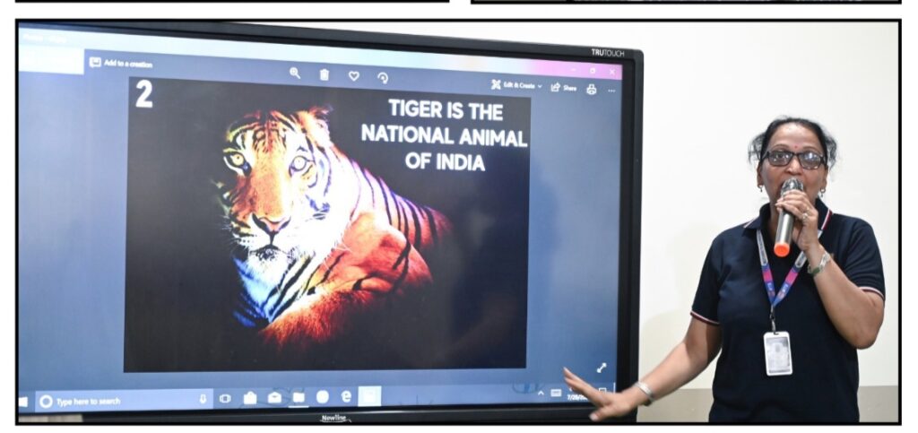 इसके पश्चात विद्यार्थियों ने मिलकर भावपूर्ण विद्यालय गीत प्रस्तुत किया। एक शिक्षाप्रद प्रस्तुति (PPT) ने बाघों की रक्षा हेतु प्रयासों को चित्रों और तथ्यों के माध्यम से जीवंत किया। प्रश्नोत्तर सत्र में बच्चों की जागरूकता और जिज्ञासा ने सबको प्रभावित किया।