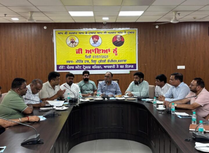 ਪੰਜਾਬ ਵਪਾਰ ਕਮਿਸ਼ਨ, ਆਬਕਾਰੀ ਤੇ ਕਰ ਵਿਭਾਗ ਦੇ ਚੇਅਰਮੈਨ ਨੇ ਜ਼ਿਲ੍ਹਾ ਬਰਨਾਲਾ ਦੇ ਵਪਾਰੀਆਂ ਵਰਗ ਨਾਲ ਕੀਤੀ ਅਹਿਮ ਬੈਠਕ पंजाब ਪੰਜਾਬ ਵਪਾਰ ਕਮਿਸ਼ਨ, ਆਬਕਾਰੀ ਤੇ ਕਰ ਵਿਭਾਗ ਦੇ ਚੇਅਰਮੈਨ ਨੇ ਜ਼ਿਲ੍ਹਾ ਬਰਨਾਲਾ ਦੇ ਵਪਾਰੀਆਂ ਵਰਗ ਨਾਲ ਕੀਤੀ ਅਹਿਮ ਬੈਠਕ Himanshu Goyal July 7, 2025 ਪੰਜਾਬ ਸਰਕਾਰ ਵਪਾਰੀਆਂ ਦੀਆਂ ਸਾਰੀਆਂ ਸਮੱਸਿਆਵਾਂ ਨੂੰ ਪਹਿਲ ਦੇ ਆਧਾਰ ‘ਤੇ ਹੱਲ ਕਰਨ ਲਈ ਵਚਨਬੱਧ : ਅਨਿਲ...Read More