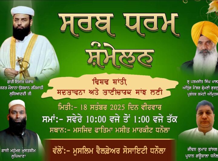 ਧਰਮ, ਭਾਈਚਾਰੇ ਅਤੇ ਅਮਨ ਦਾ ਸੁਨੇਹਾ ਲੈ ਕੇ ਆ ਰਿਹਾ ਹੈ ਧਨੌਲਾ ਵਿਖੇ ਸਰਭ ਧਰਮ ਸੰਮੇਲਨ पंजाब ਧਰਮ, ਭਾਈਚਾਰੇ ਅਤੇ ਅਮਨ ਦਾ ਸੁਨੇਹਾ ਲੈ ਕੇ ਆ ਰਿਹਾ ਹੈ ਧਨੌਲਾ ਵਿਖੇ ਸਰਭ ਧਰਮ ਸੰਮੇਲਨ Himanshu Goyal September 14, 2025 🌟 ਧਨੌਲਾ ਬਣੇਗਾ ਧਾਰਮਿਕ ਸਾਂਝ ਤੇ ਅਮਨ ਦਾ ਪੈਗਾਮ ਦੇਣ ਵਾਲਾ ਕੇਂਦਰ 18 ਸਤੰਬਰ ਨੂੰ ਹੋਣ ਜਾ...Read More