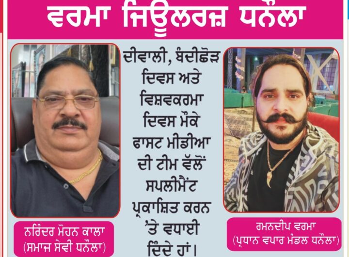 ਸਮੂਹ ਵਪਾਰ ਮੰਡਲ ਧਨੌਲਾ ਅਤੇ ਵਰਮਾ ਪਰਿਵਾਰ ਵੱਲੋਂ ਦੀਵਾਲੀ, ਬੰਦੀ ਛੋੜ ਦਿਵਸ ਅਤੇ ਕਿਰਤ ਦੇ ਦਾਤਾ ਬਾਬਾ...