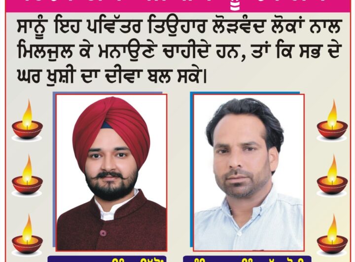 ਸਮੂਹ ਦੇਸ਼ ਵਾਸੀਆਂ ਨੂੰ ਦੀਵਾਲੀ, ਬੰਦੀ ਛੋੜ ਦਿਵਸ ਅਤੇ ਕਿਰਤ ਦੇ ਰਚਨਹਾਰ ਬਾਬਾ ਵਿਸ਼ਵਕਰਮਾ ਦਿਵਸ ਦੀਆਂ ਲੱਖ...